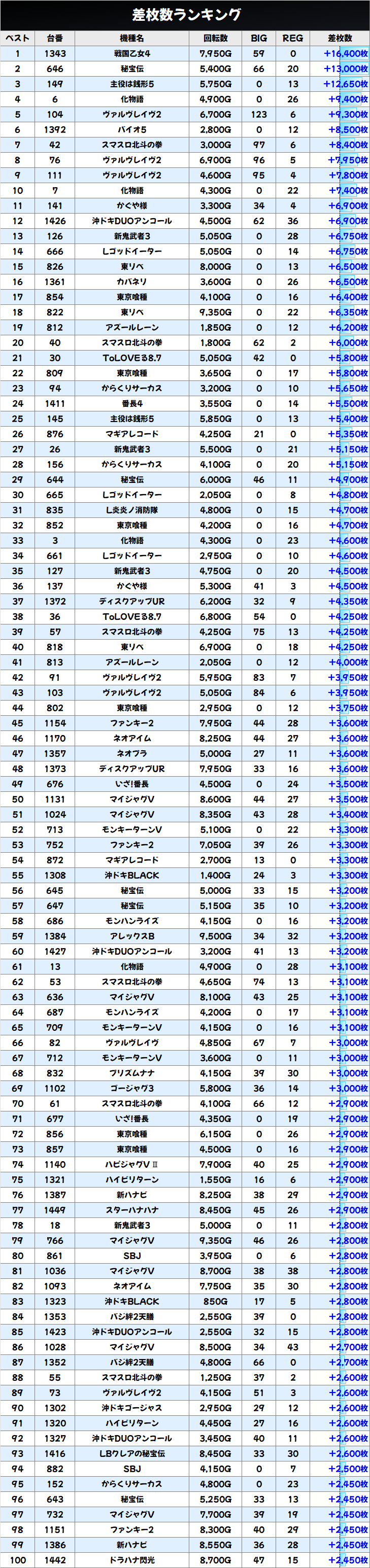 差枚数ランキング&島図をチェック!