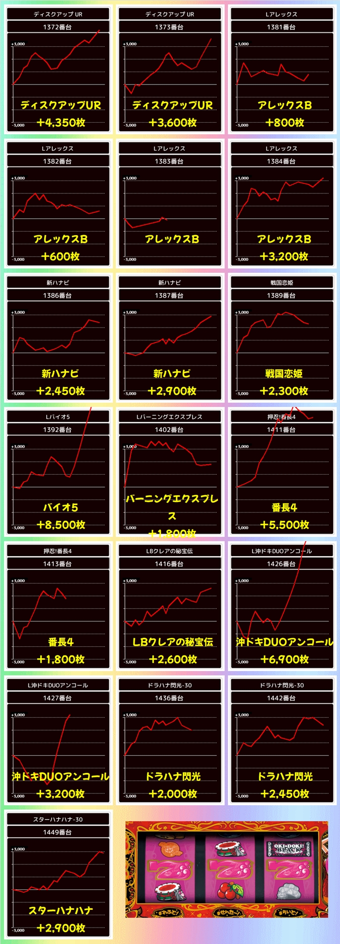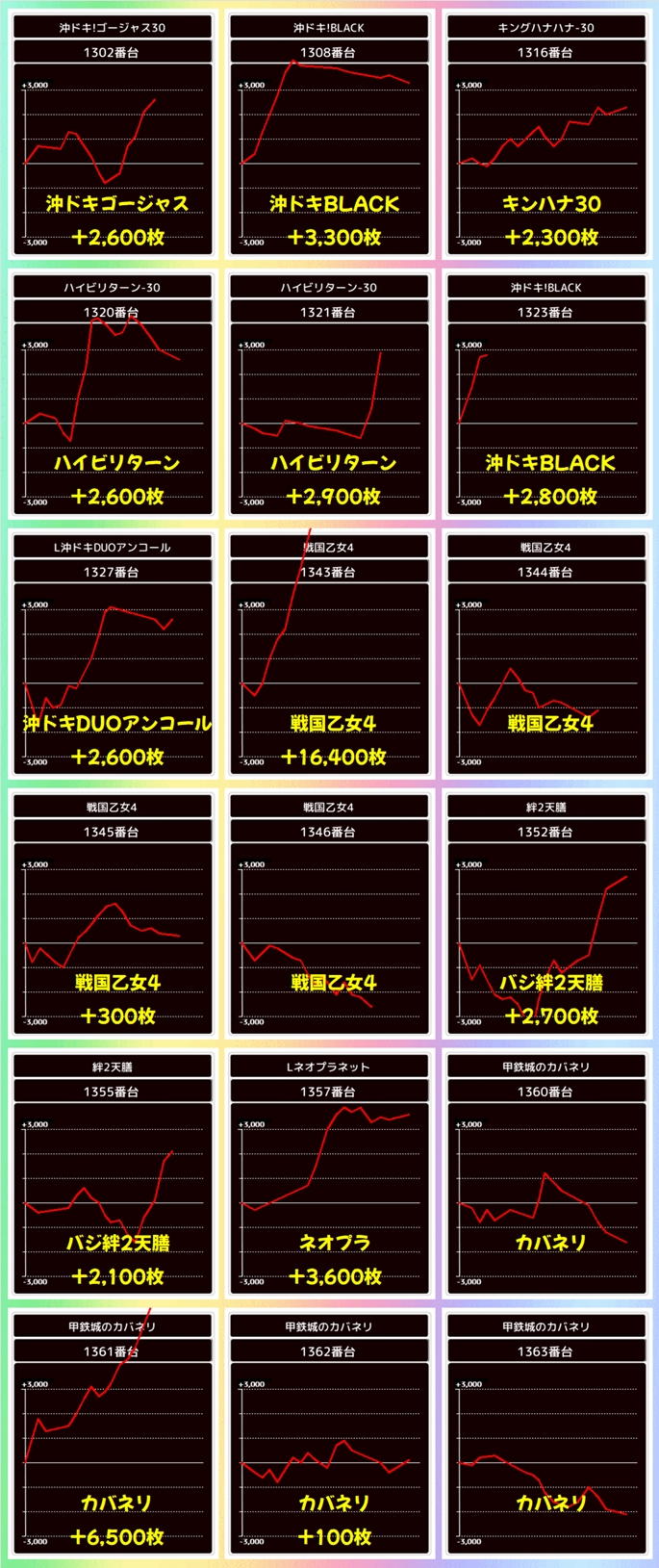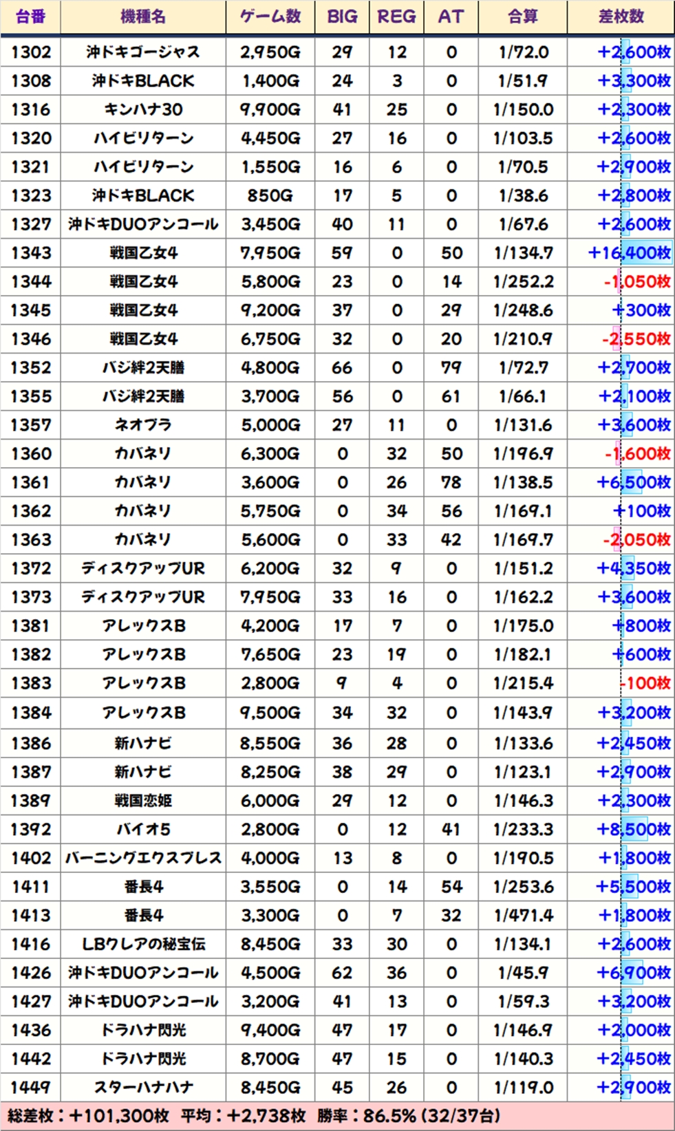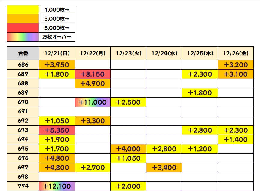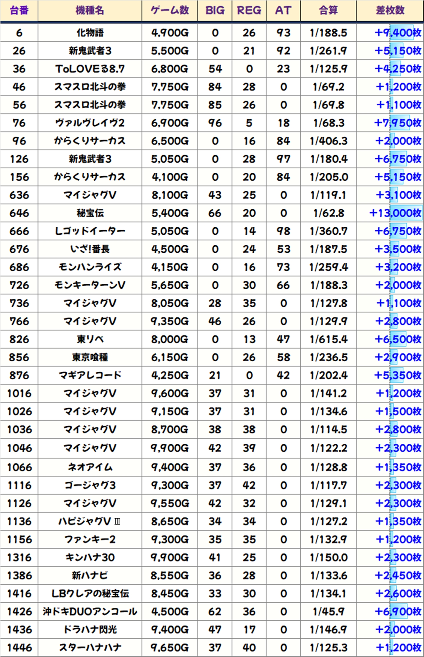 今回も優秀台(+1000枚超)をピックアップしましたので見ていきましょう!
