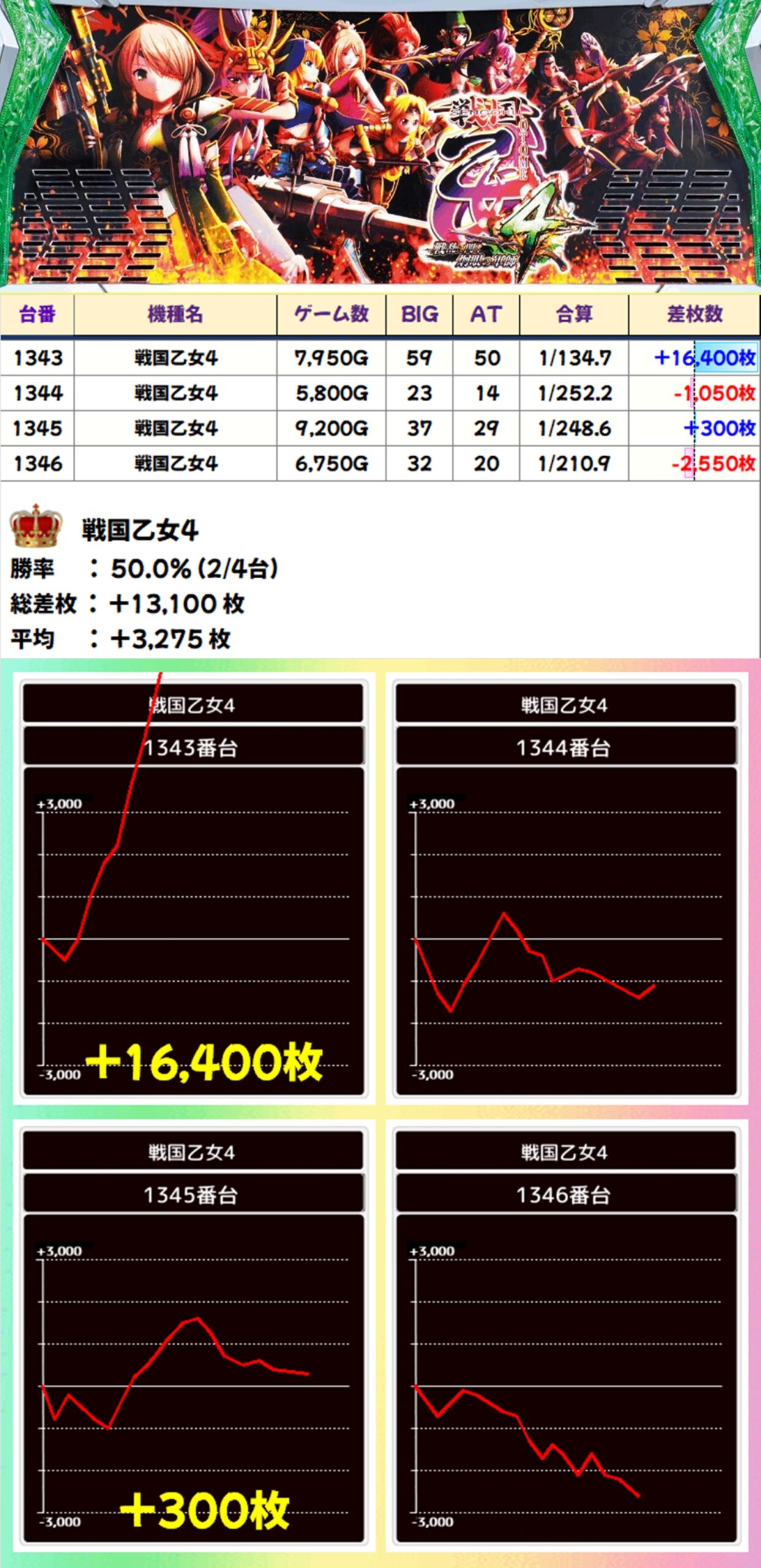 戦国乙女4(2/4台+)→平均+3,275枚