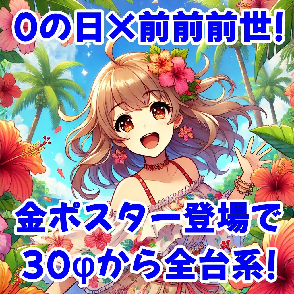 さらに、今回は0の日ポスターが金色ver.&前前前世開催中ということで、全台系や1/2系の仕掛けがいつも以上に期待できる日となっていました。