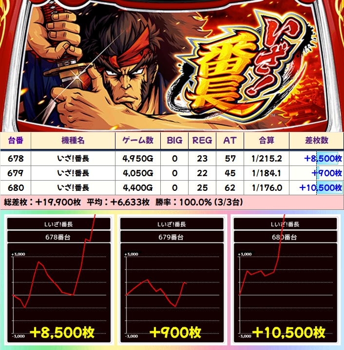 ■いざ!番長(6/13台+)→平均+400枚