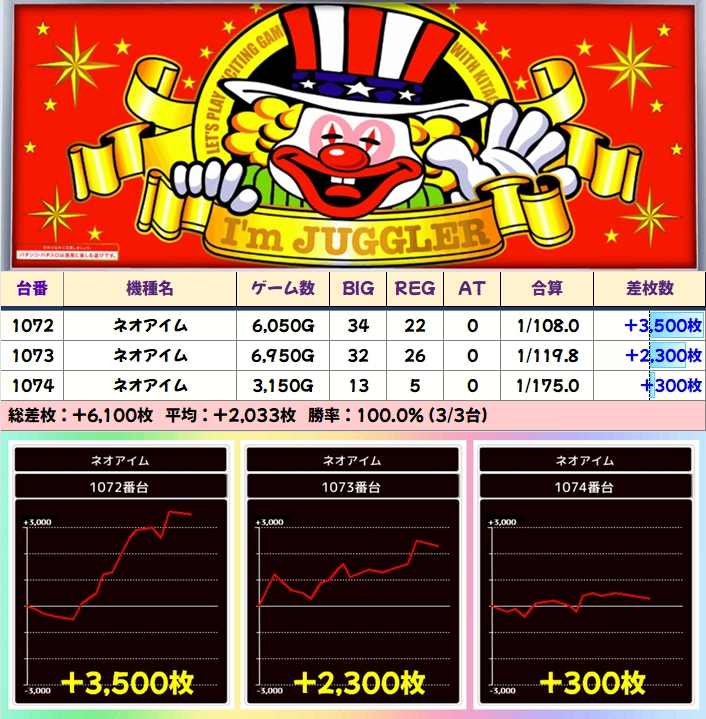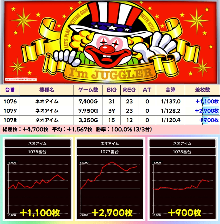 平均+2197枚と大幅プラスを記録し、全台プラス差枚と素晴らしい結果になっていました。