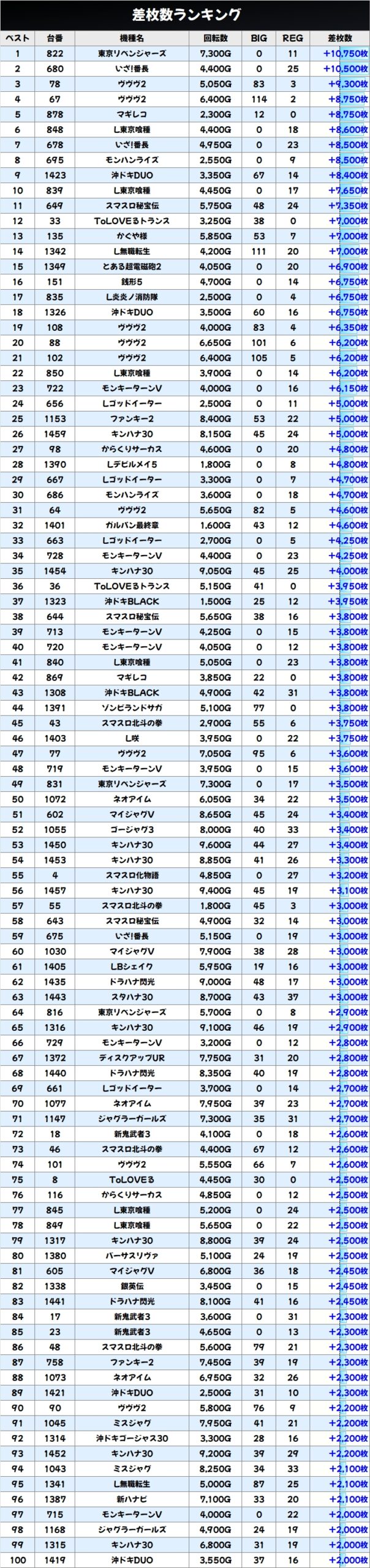 差枚数ランキング&島図をチェック!