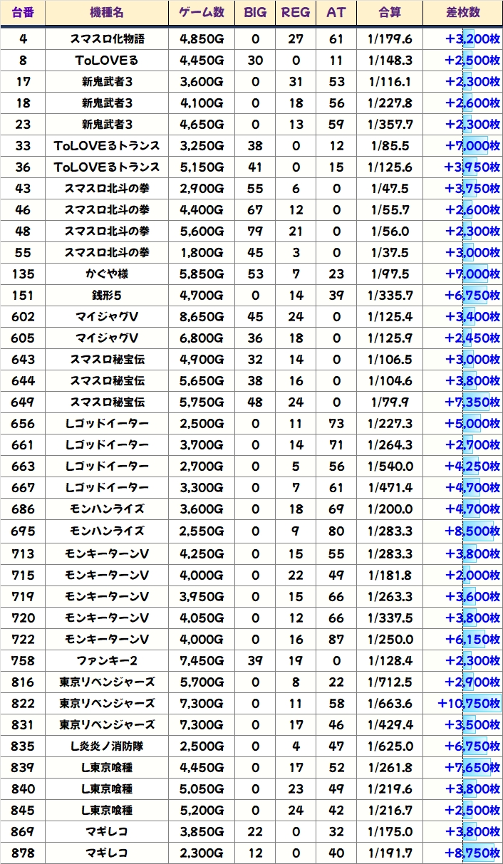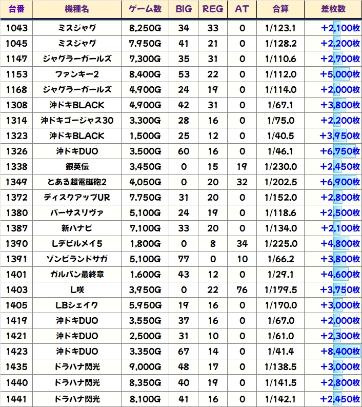 今回も優秀台(+1000枚超)をピックアップしましたので見ていきましょう!