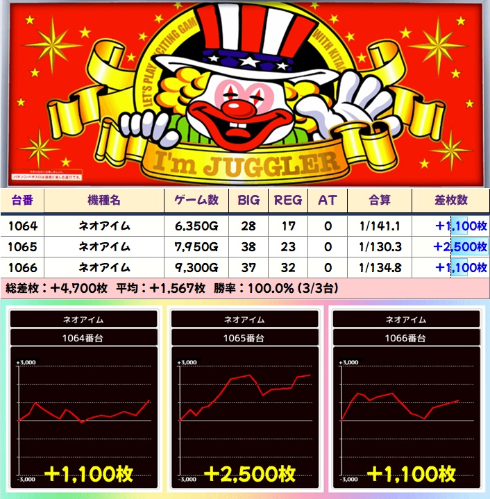 【3台並び】ネオアイム(1064-1066番台)→Ave+1,567枚