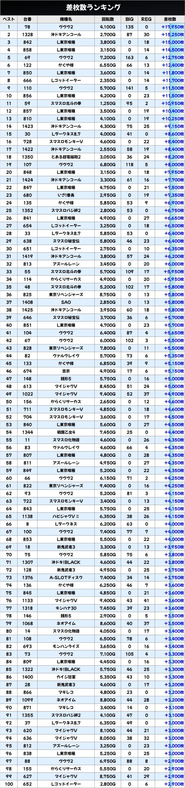 差枚数ランキング&島図をチェック!