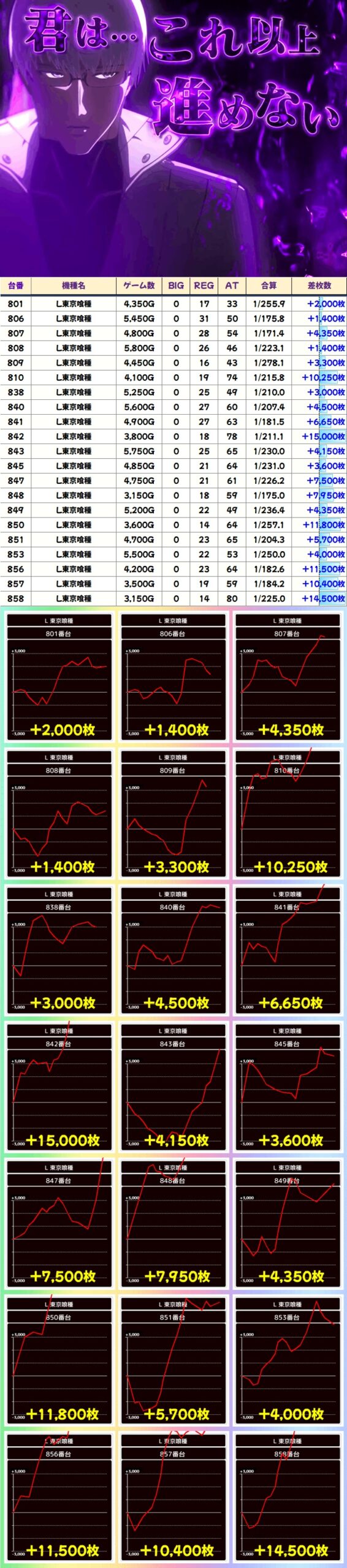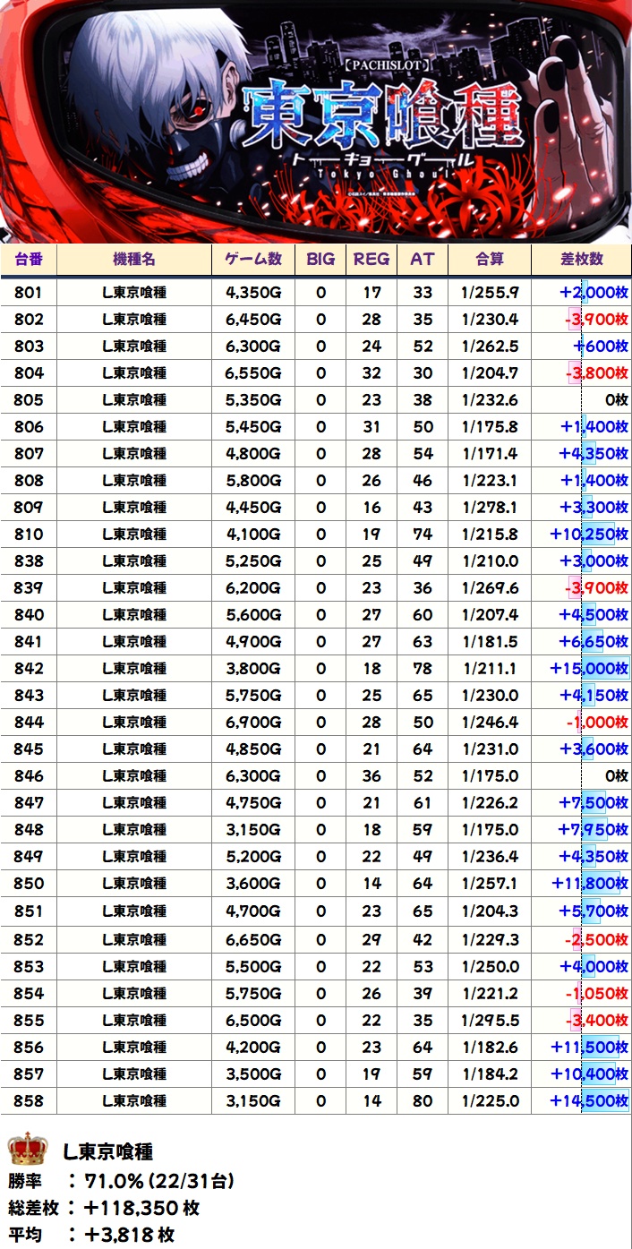 東京喰種(22/31台+) ➡平均 +3,818枚