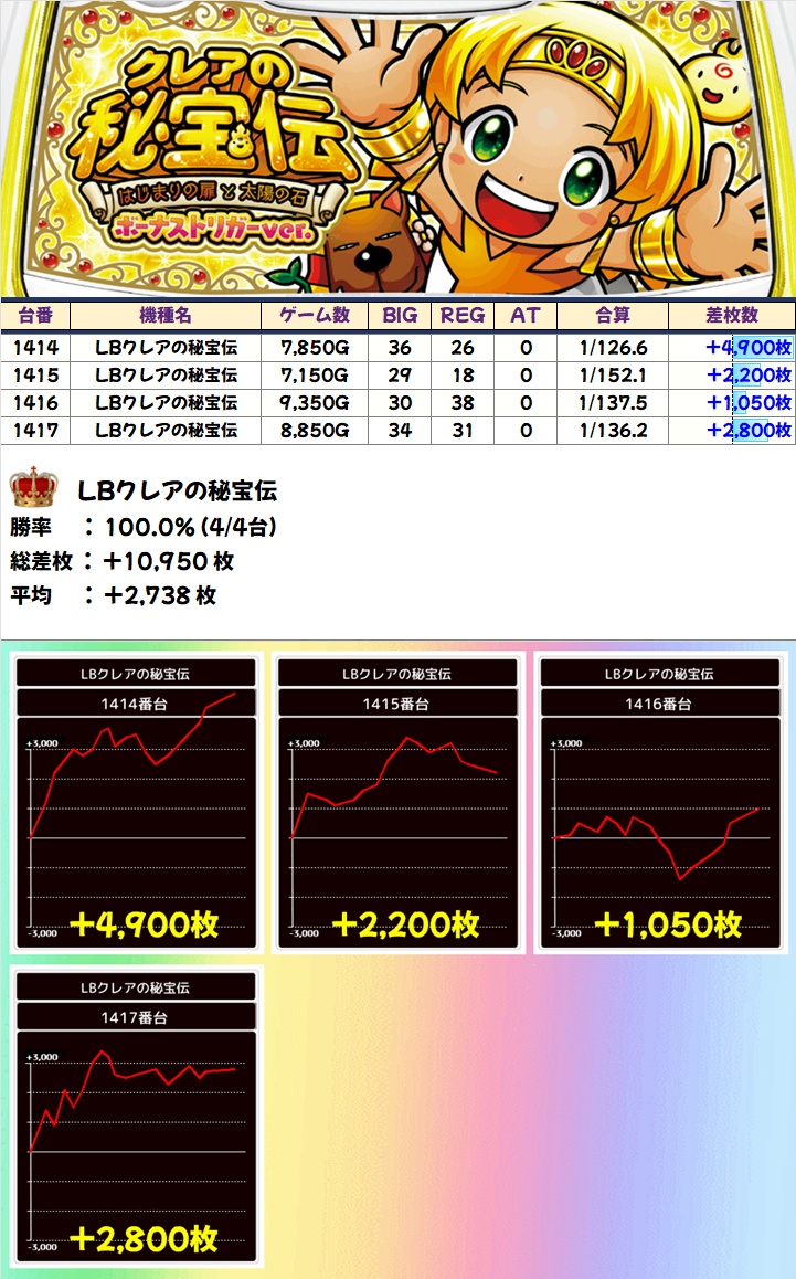 LBクレアの秘宝伝(4/4台+)➡平均+2,738枚