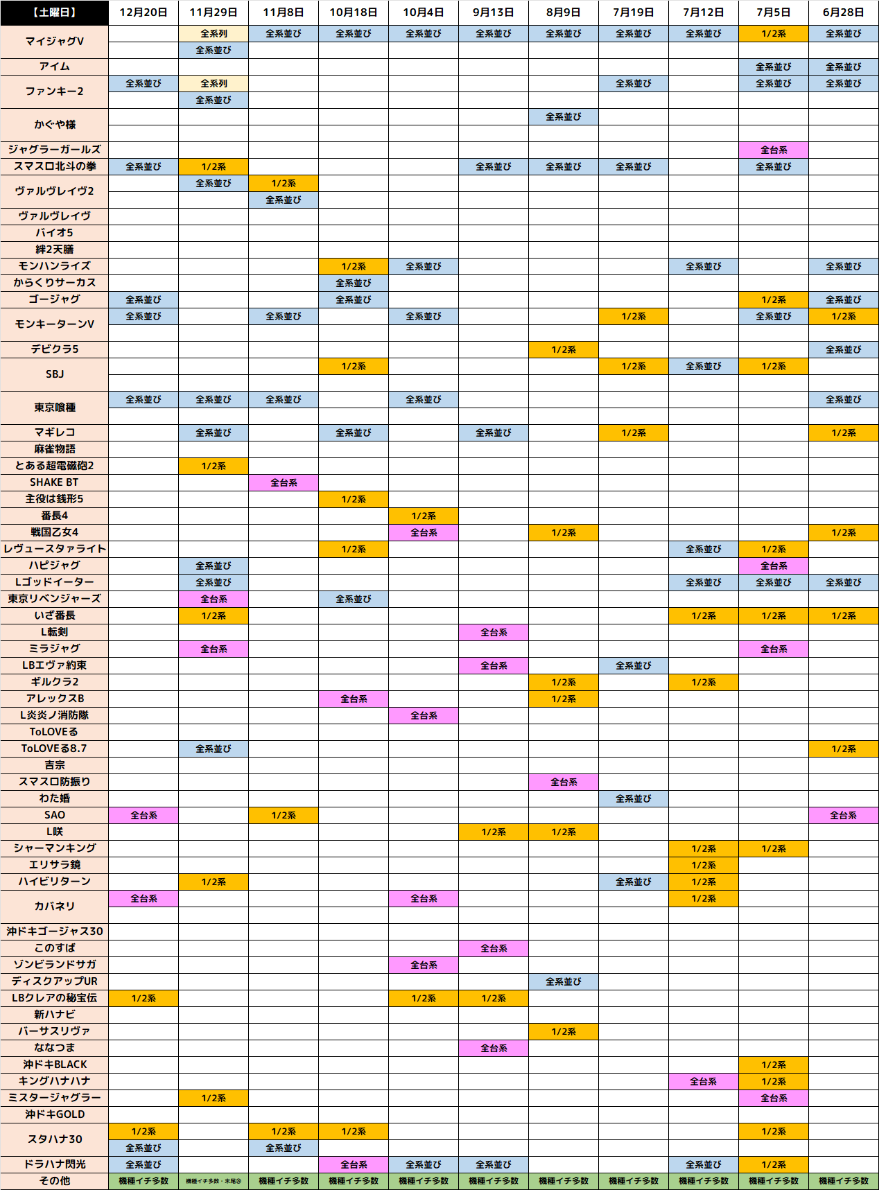今回は下記機種に1/2系濃厚の仕掛けがあった模様です。