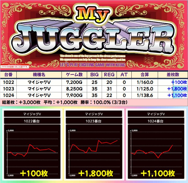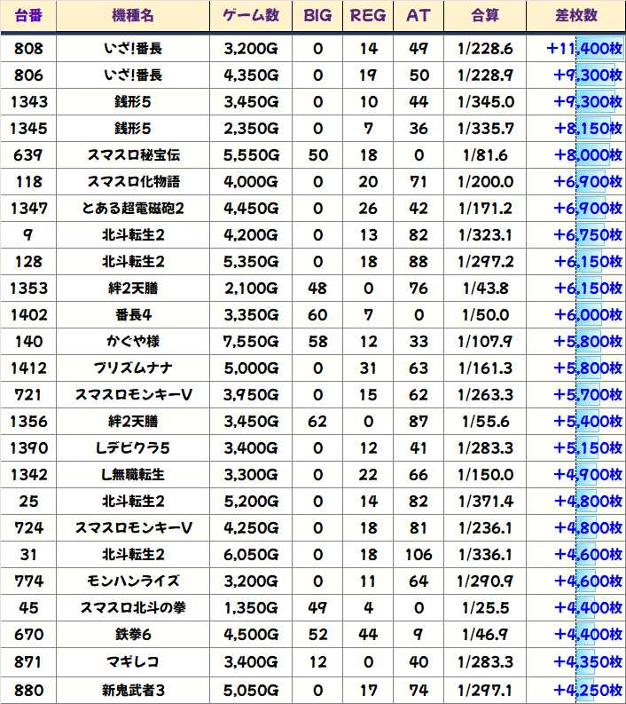 今回も優秀台(+1000枚超)をピックアップしましたので見ていきましょう!