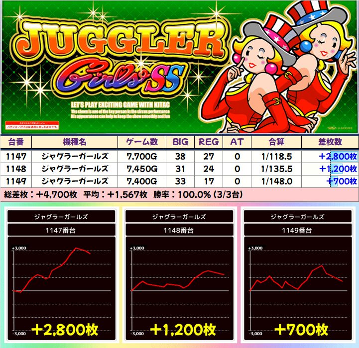 【3台並び】ジャグラーガールズ:1147-1149番台