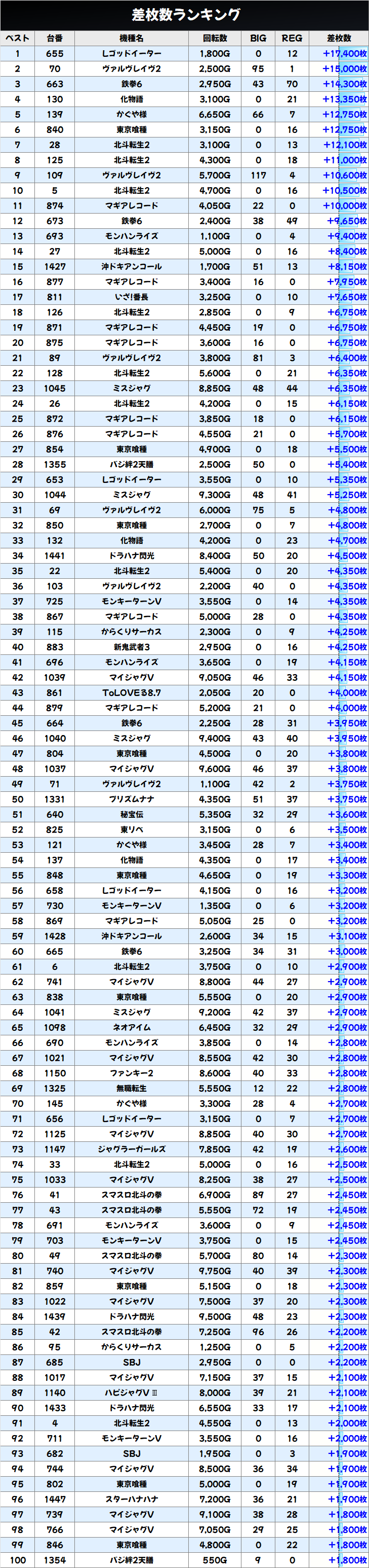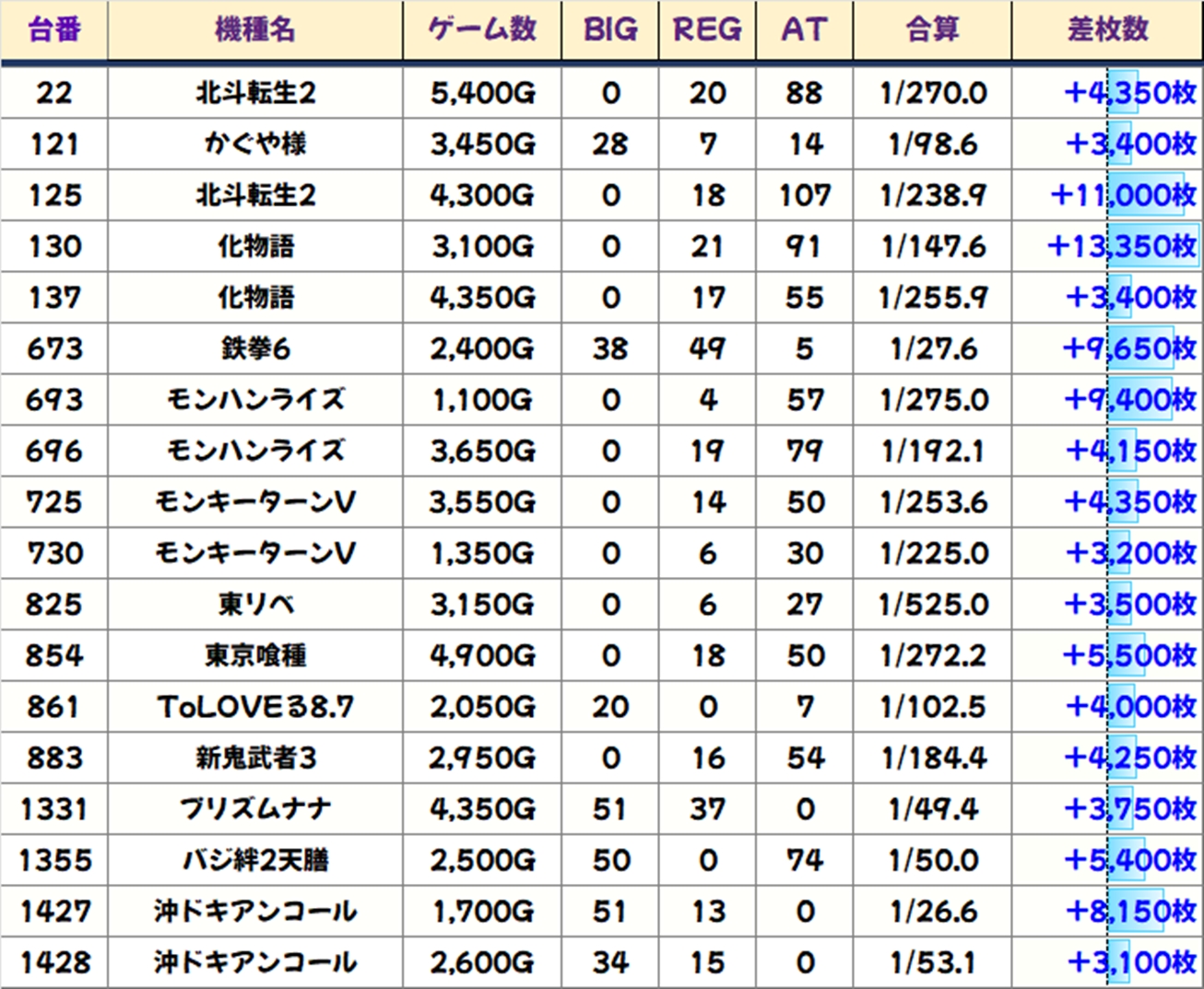 今回も優秀台(+1000枚超)をピックアップしましたので見ていきましょう!