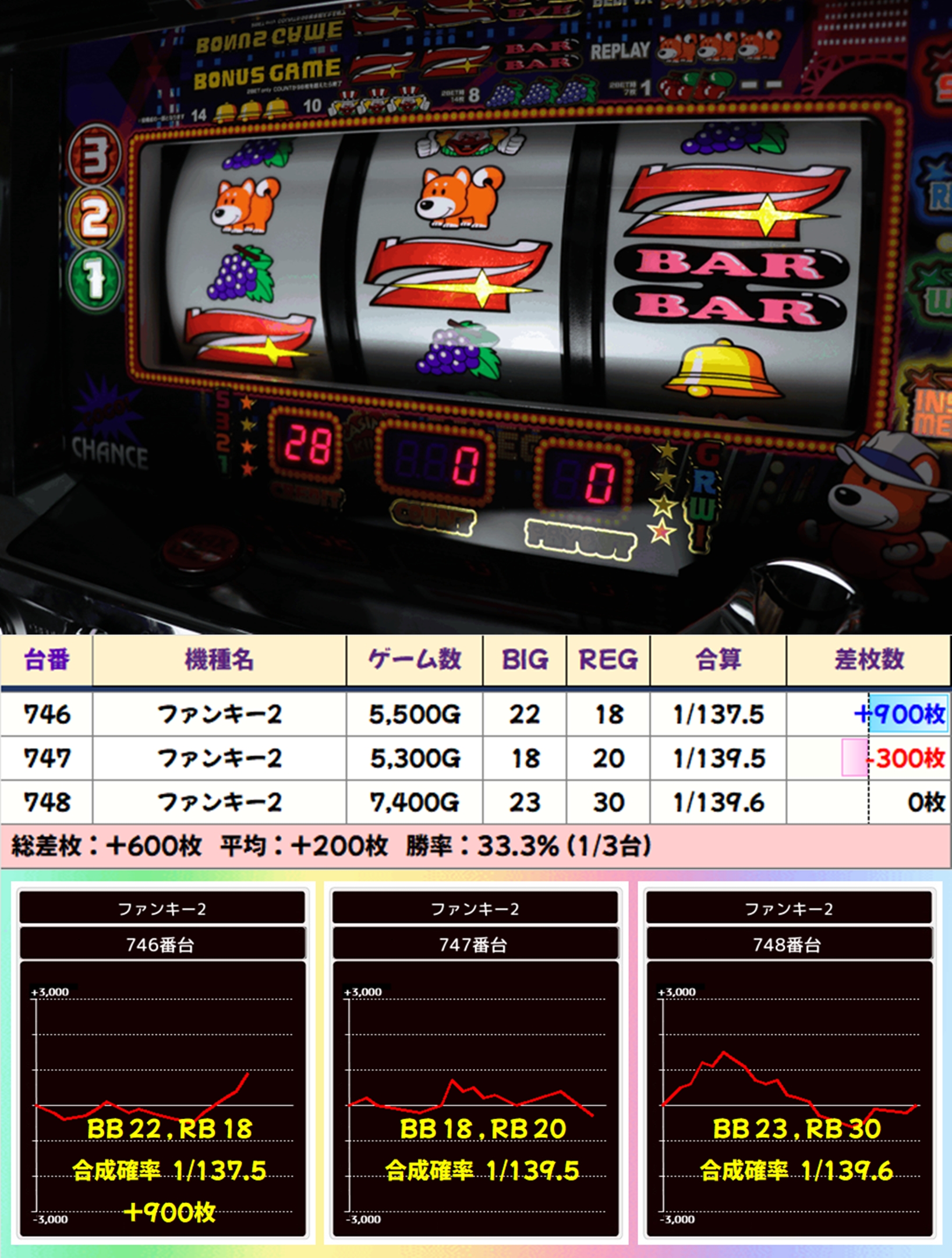 【3台並び】ファンキー2(746-748番台)→平均+200枚