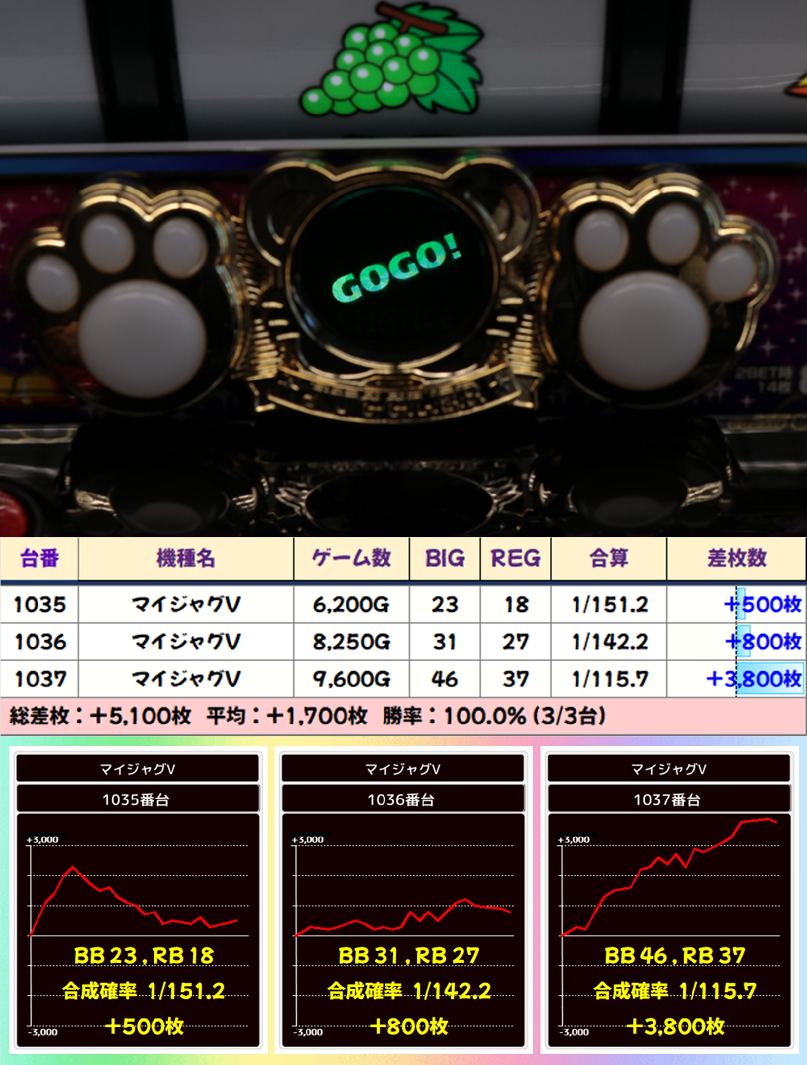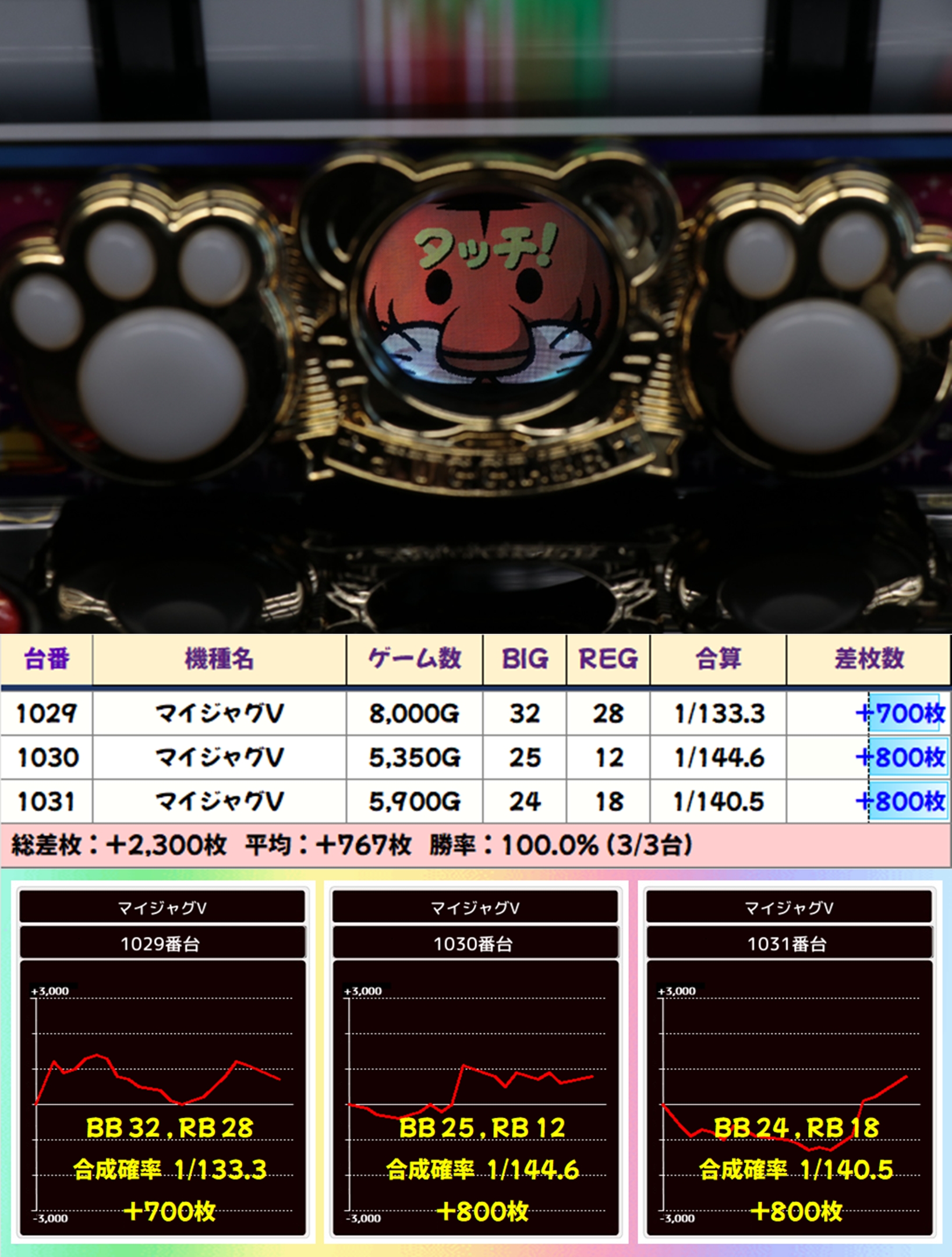 ミスジャグにはダブルでヒントがあったようで、こちらの3機種はいずれも優秀な結果となっておりました。