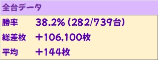 今回の③⑨の日もこれまでと同じく優秀な結果に。総差枚は+106100枚となり平均+144枚という結果となりました!
