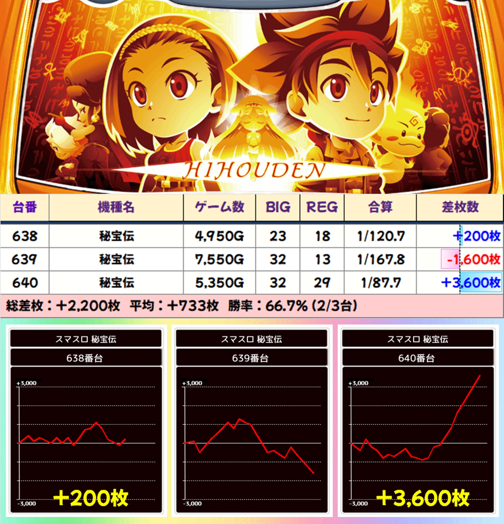 【3台並び】秘宝伝(638-640番台)→平均+733枚