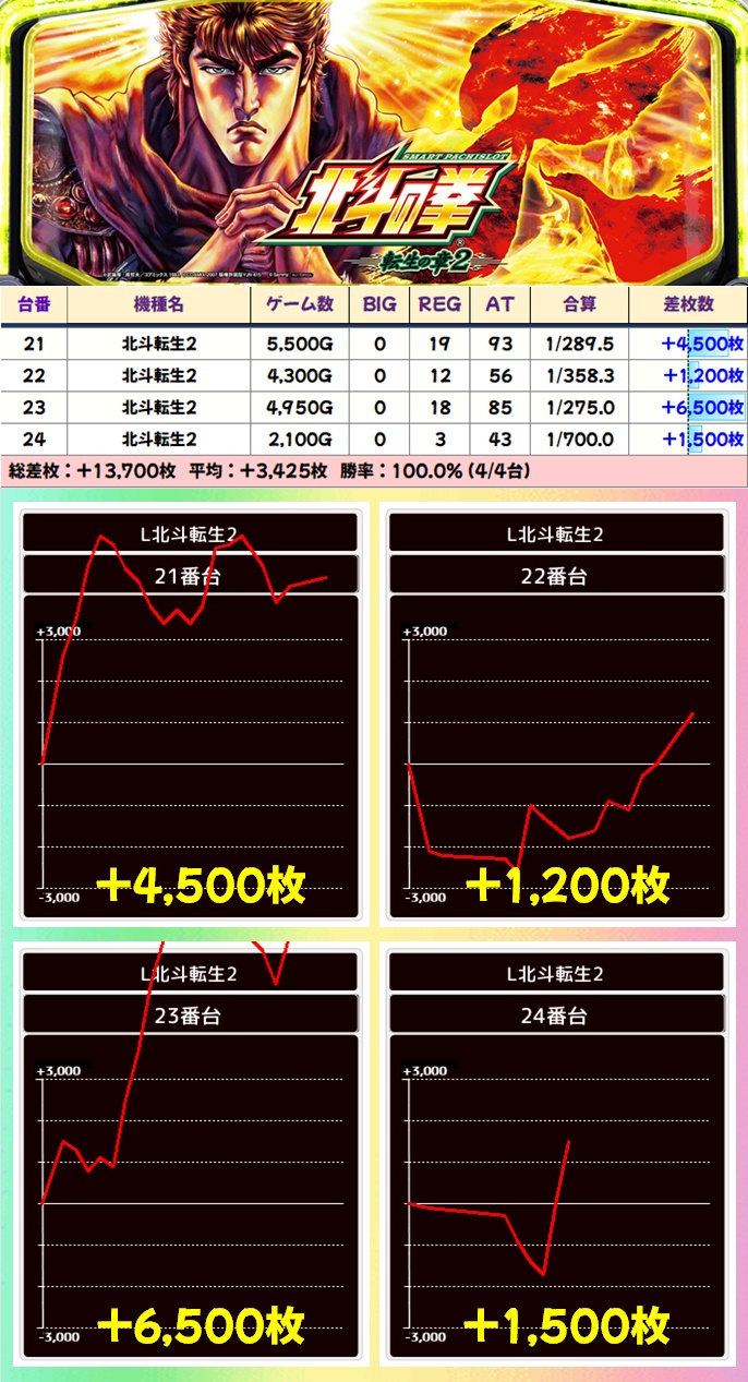 【4台並び】北斗転生2(21-24番台)➡平均+3,425枚