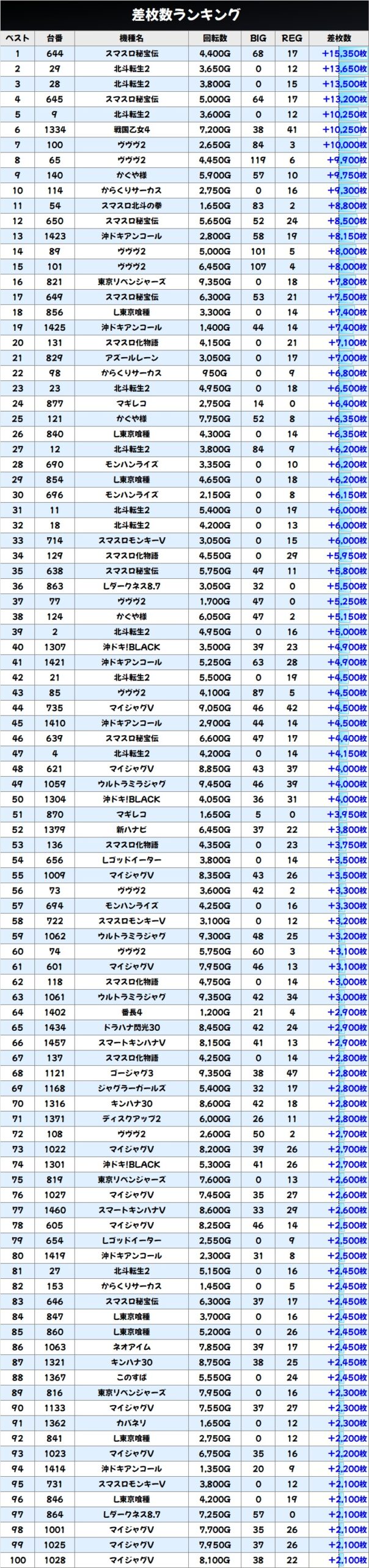 差枚数ランキング&島図をチェック!