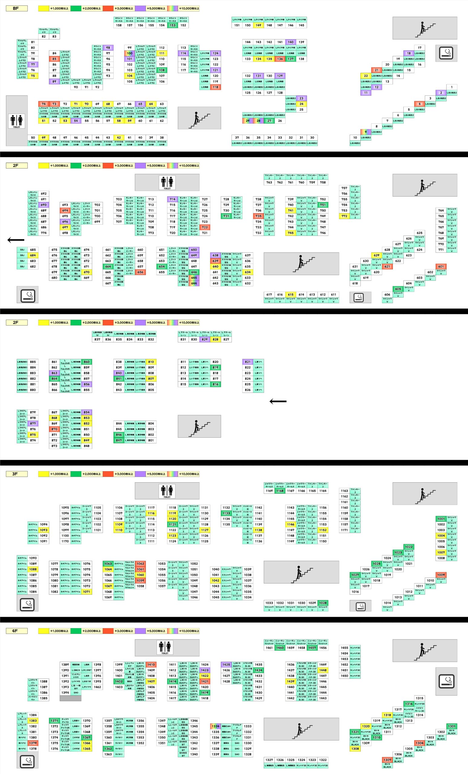 人気機種を中心に単品優秀台も複数あり!4Fが控えめに思えるので明日以降の盛り上がりに期待!