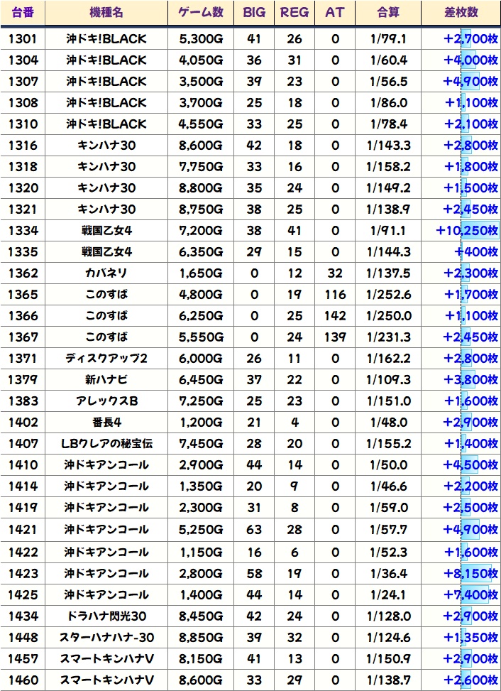 今回も優秀台(+1000枚超)をピックアップしましたので見ていきましょう!