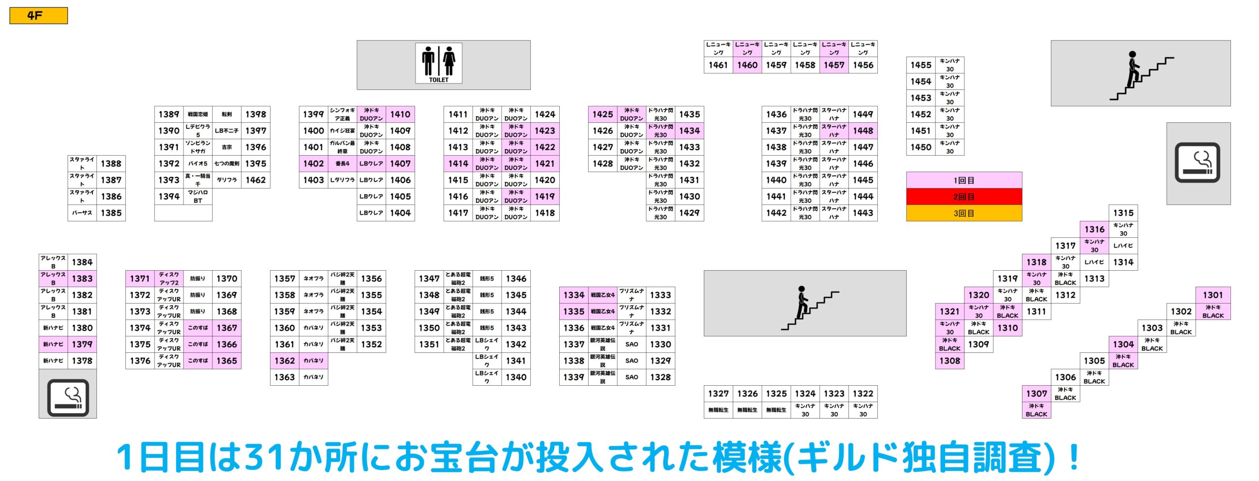 今回の激熱7daysは4Fフロアで開催されている模様で、全系や高配分、並び仕掛けも4Fから飛び出しました!期間中は上表を参考に4Fで立ち回るのもあり!