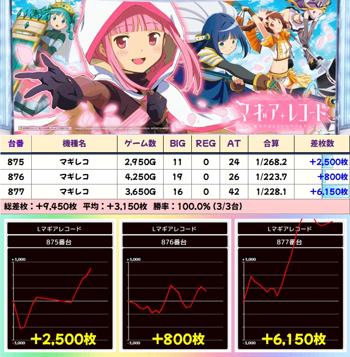【3台並び】マギレコ(875-877番台)➡平均+3,150枚