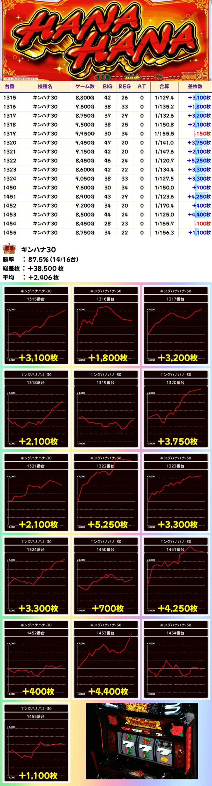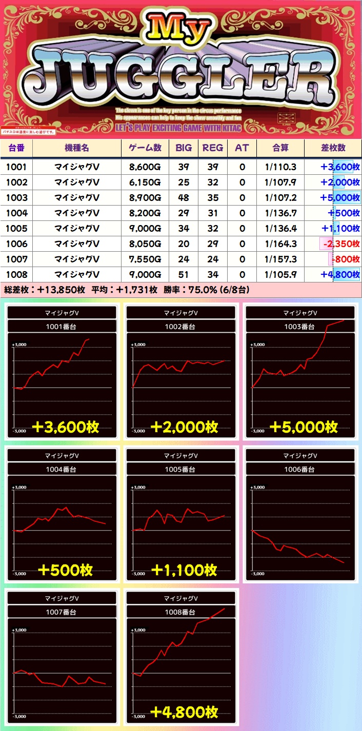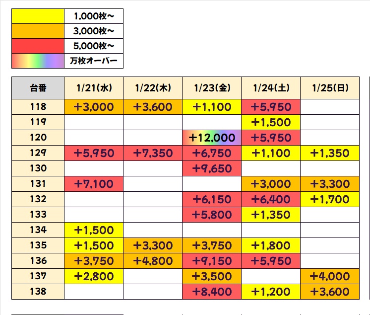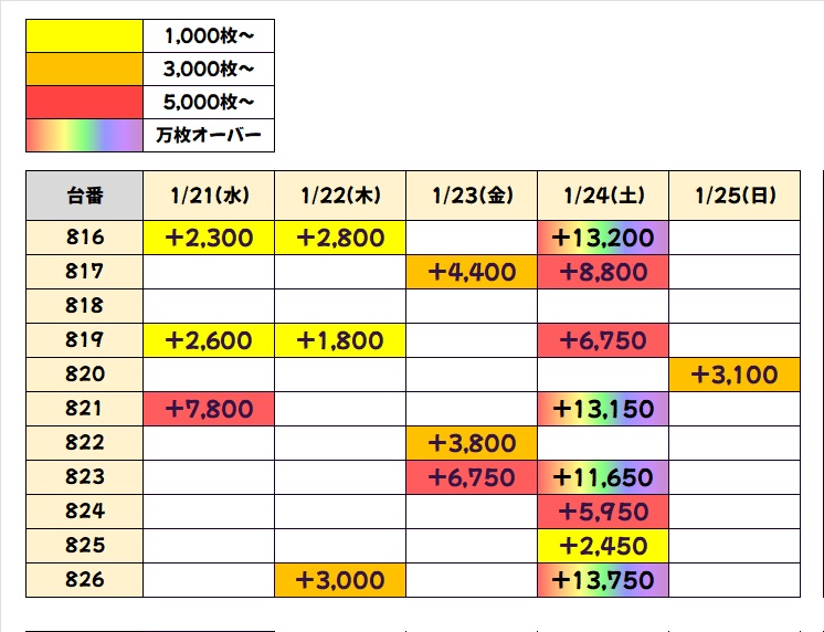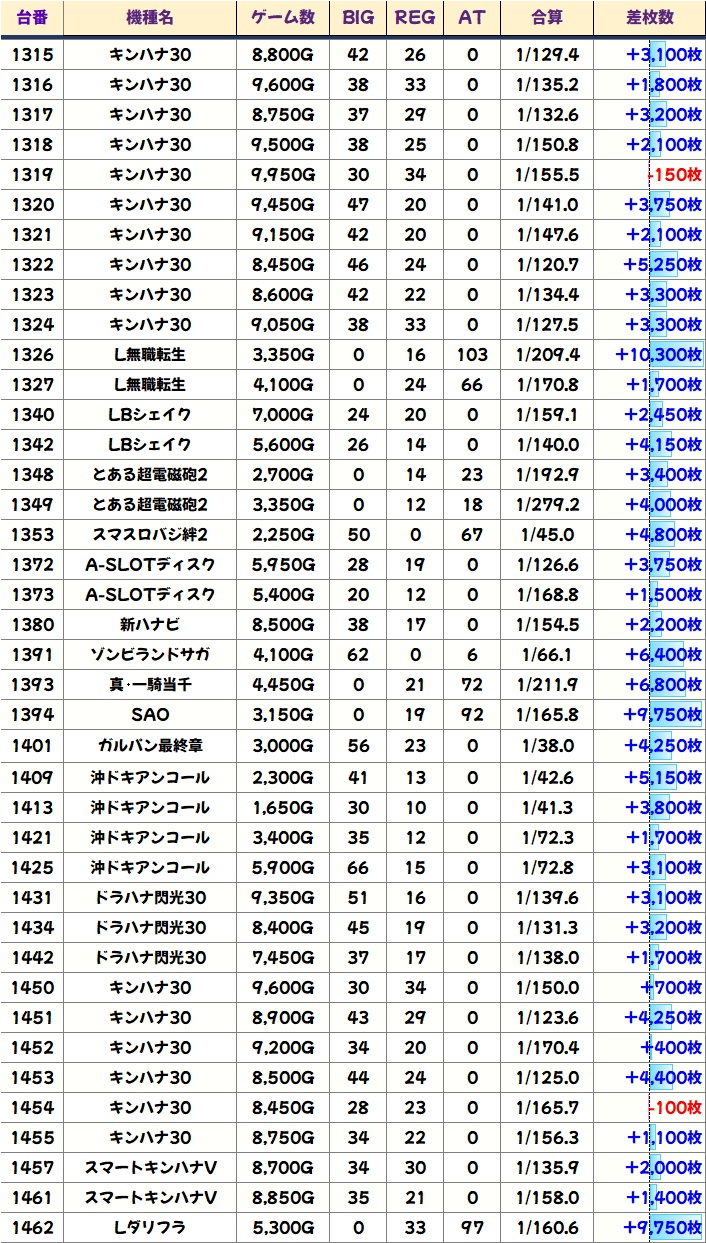 今回も優秀台(+1000枚超)をピックアップしましたので見ていきましょう!
