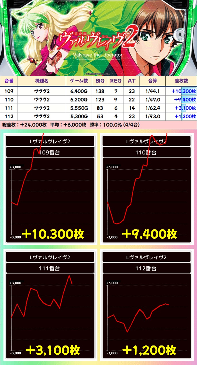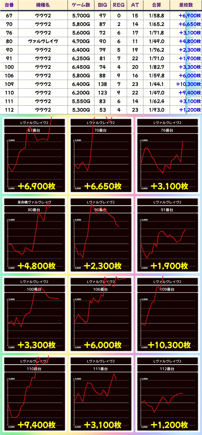 ヴヴヴ2からは万枚クラスの2台を筆頭に3000枚超が複数あり!