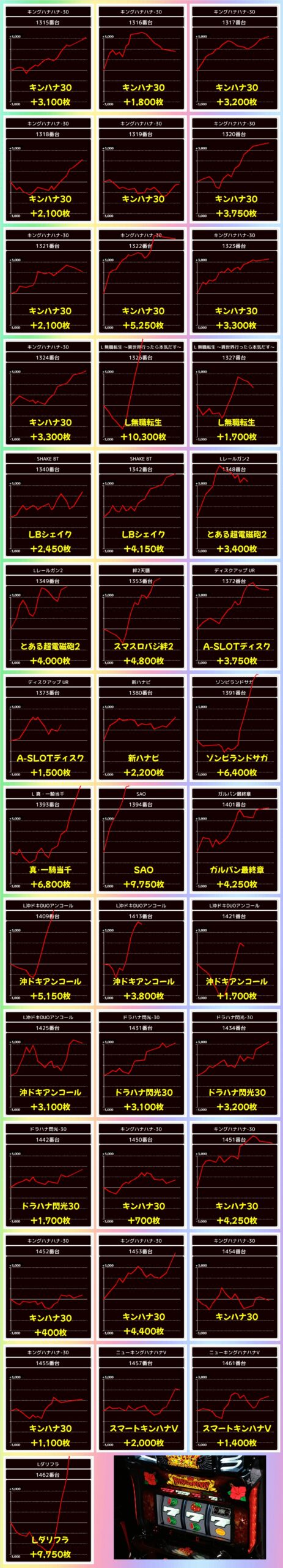下記に各機種の+1000枚以上の優秀台をピックアップ!