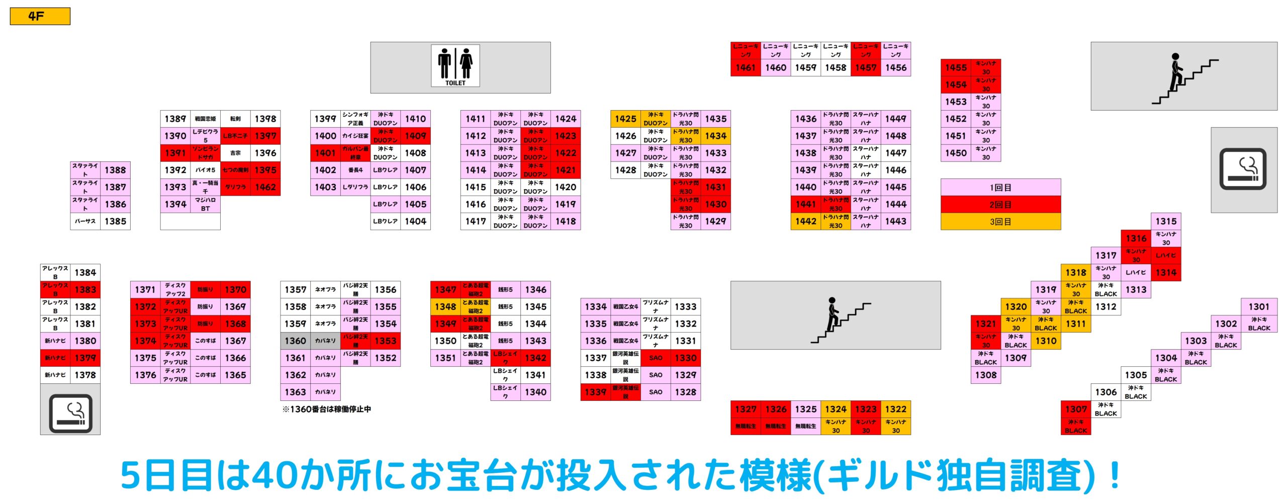 過去の傾向的に、27日までは対象フロアにお宝台が大量投入されますので、明日以降も積極的に4Fフロアを狙っていきたいですね。