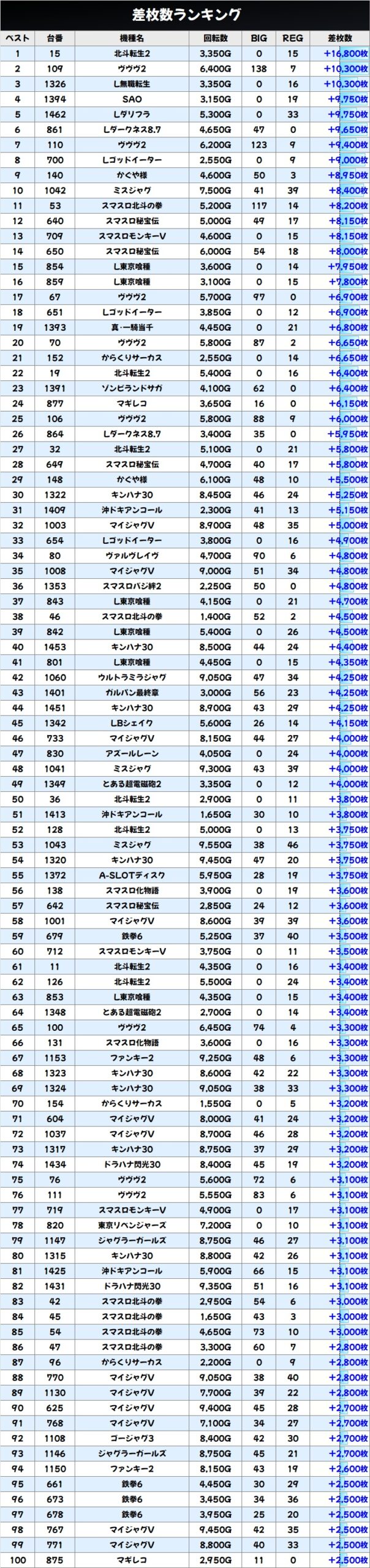 差枚数ランキング&島図をチェック!