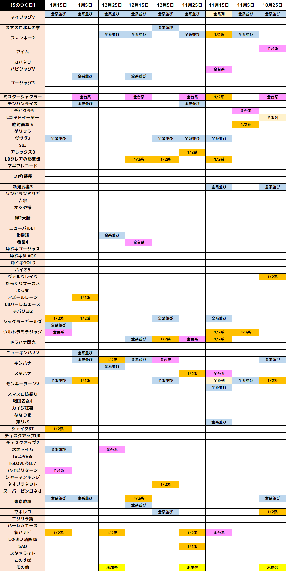 5の日なので5の日機種のジャグハナからそれぞれ1シリーズが全系濃厚に!稼働はもちろん結果も安定感抜群です!
