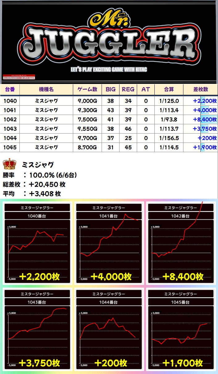 ミスジャグ (6/6台+) ➡平均 +3,408枚