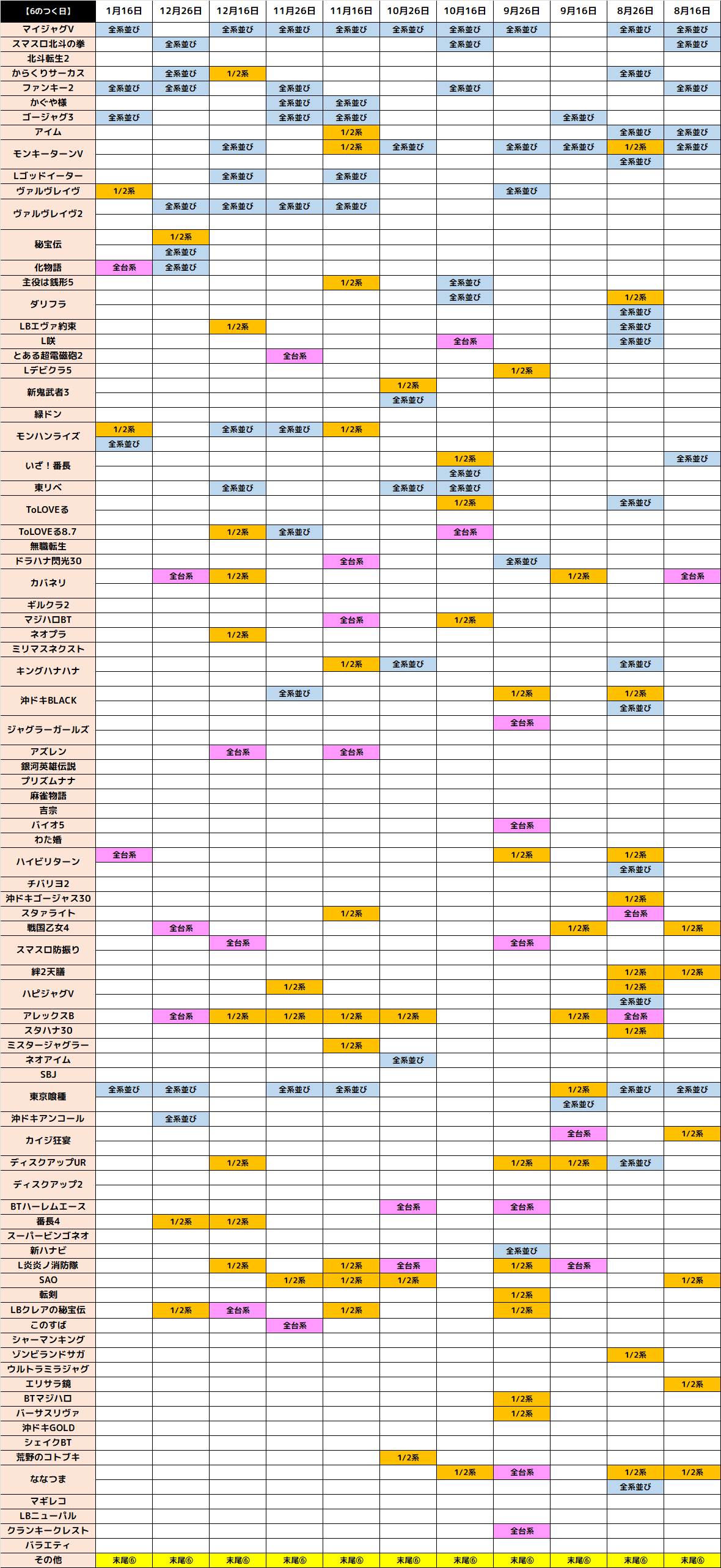 また、下記の過去の仕掛けでは、全台系・1/2系・並びの仕掛けが多数出現しております!