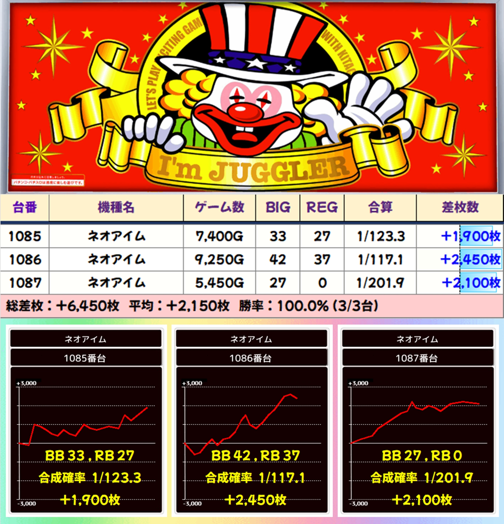 【3台並び】ネオアイム(1085-1087番台)→平均+2,150枚