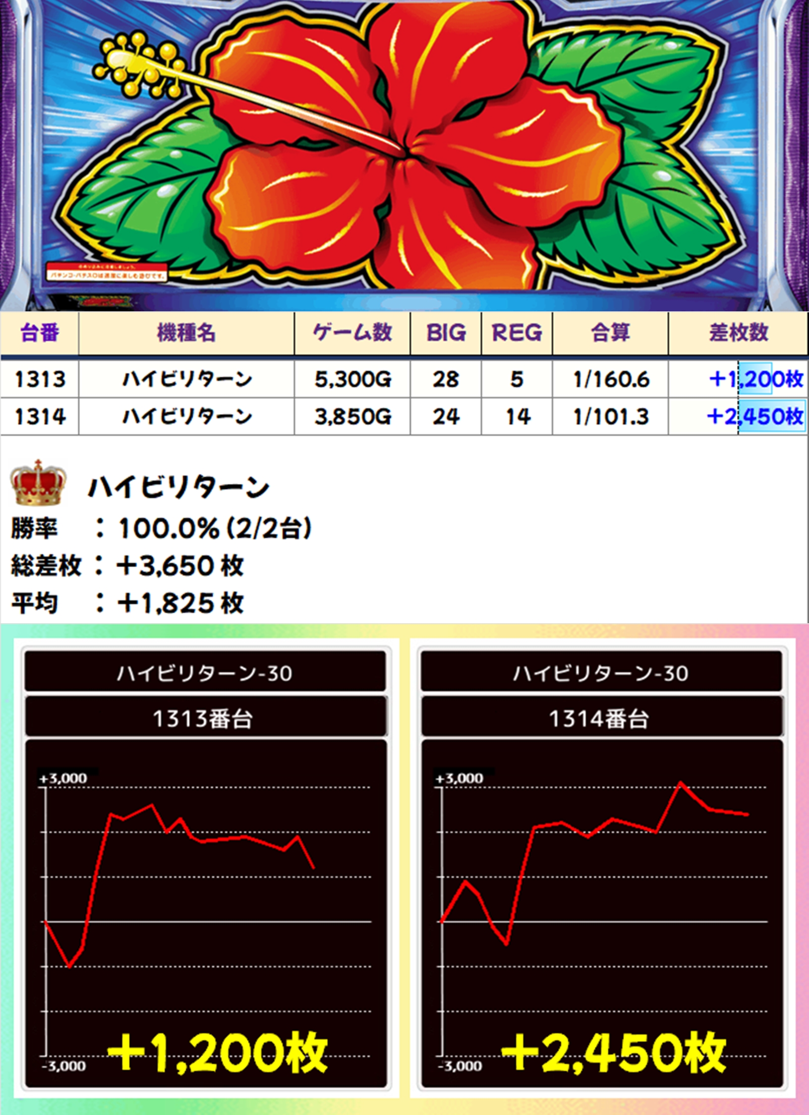 ハイビリターンも4Fの機種で、こちらも2台ともにプラスの結果となりました。