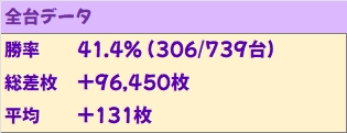 今回の6のつく日は総差枚+96450枚、平均+131枚という結果となりました。
