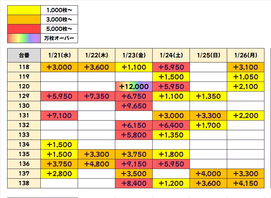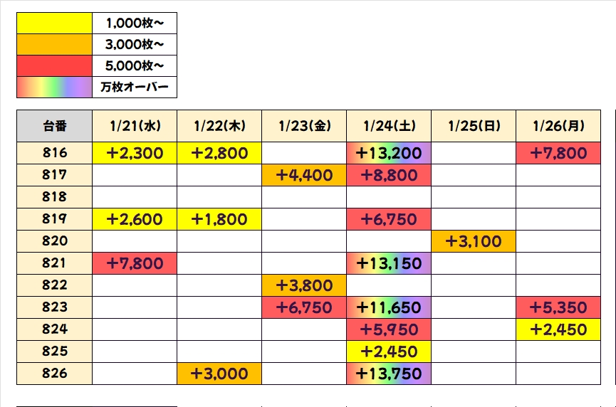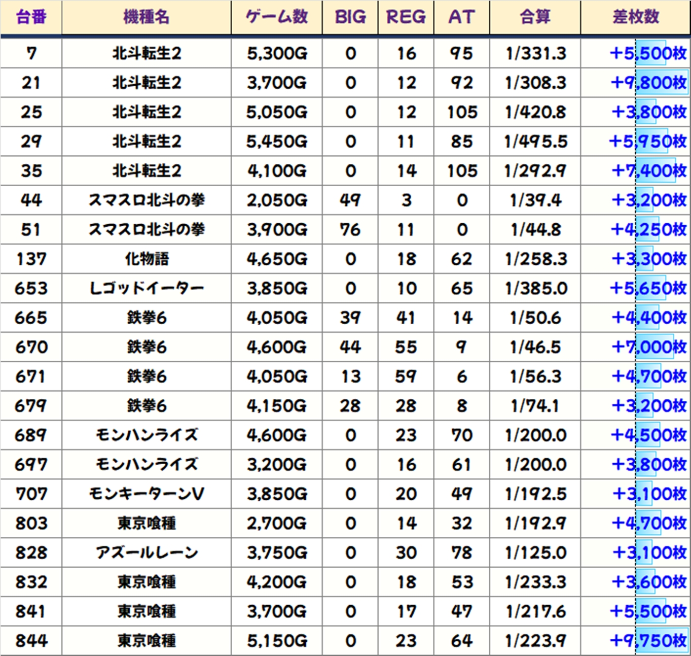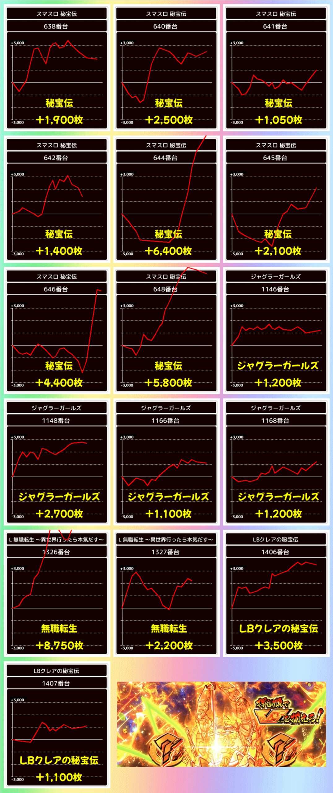 今回も優秀台(+1000枚超)をピックアップしましたので見ていきましょう!