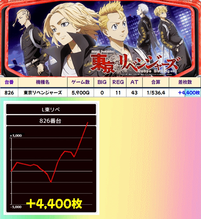 東京リベンジャーズは前日まで大量出玉が続出していましたが、今回は不発台が目立つ結果に…。