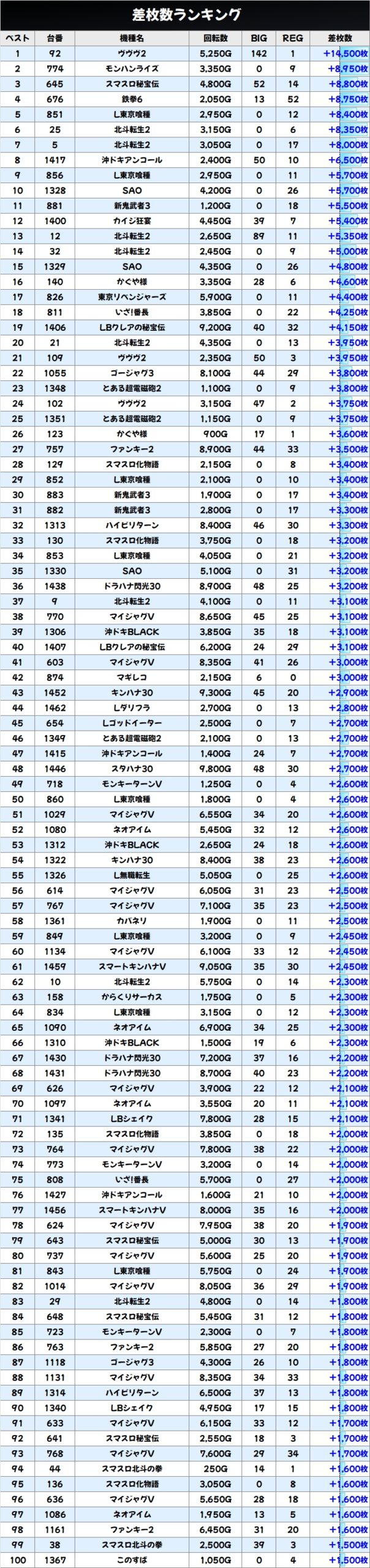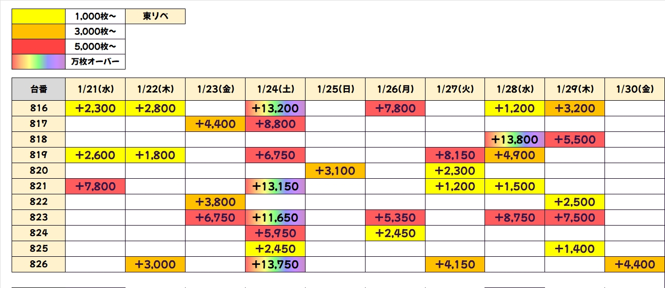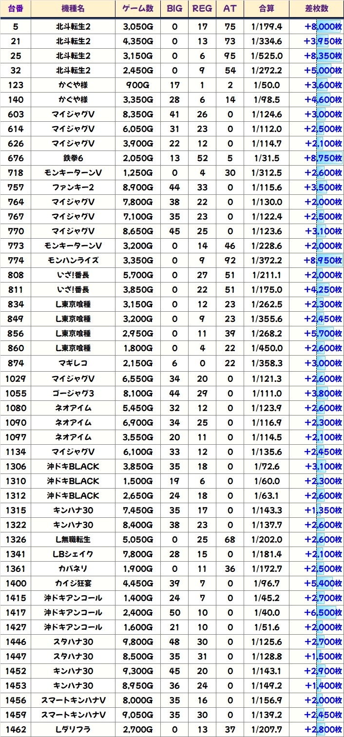 今回も優秀台(+1000枚超)をピックアップしましたので見ていきましょう!