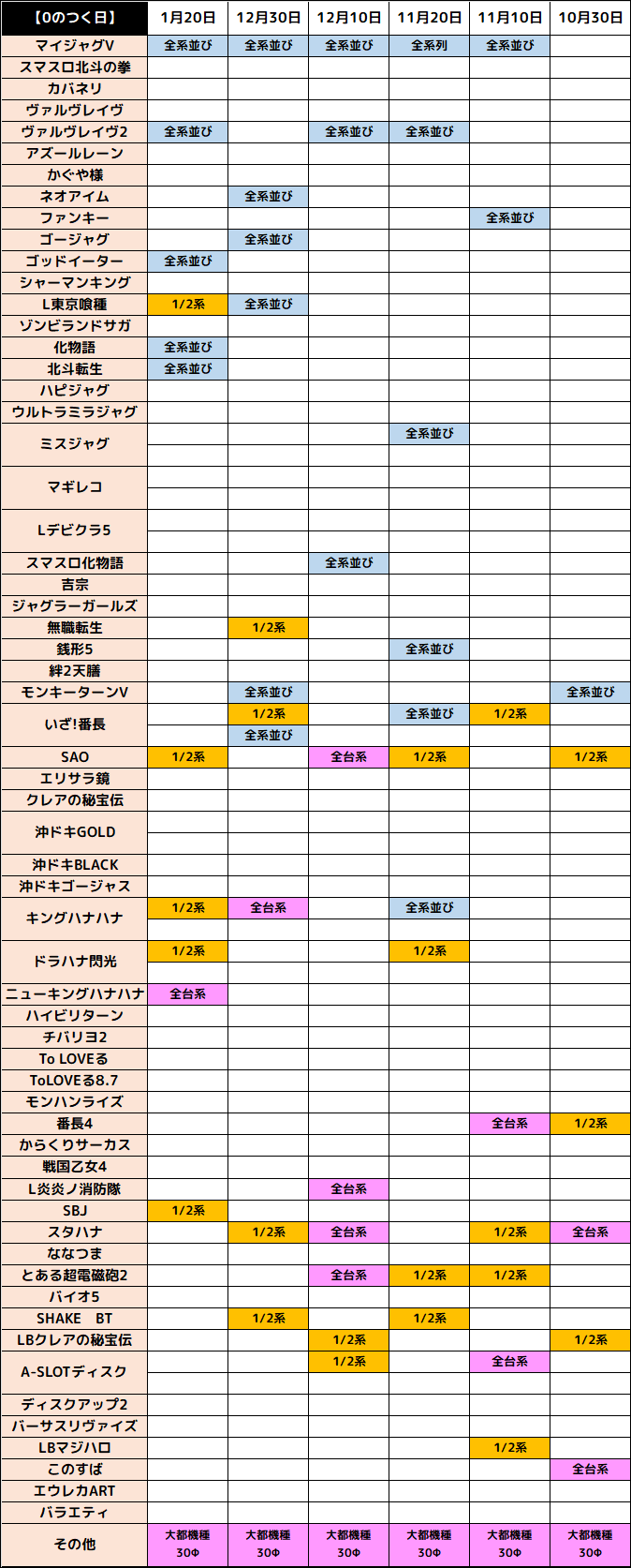 繰り返しになりますが、0の日は大都&30φが狙い目となりますので、早番を引けた際は積極的に狙っていきましょう!