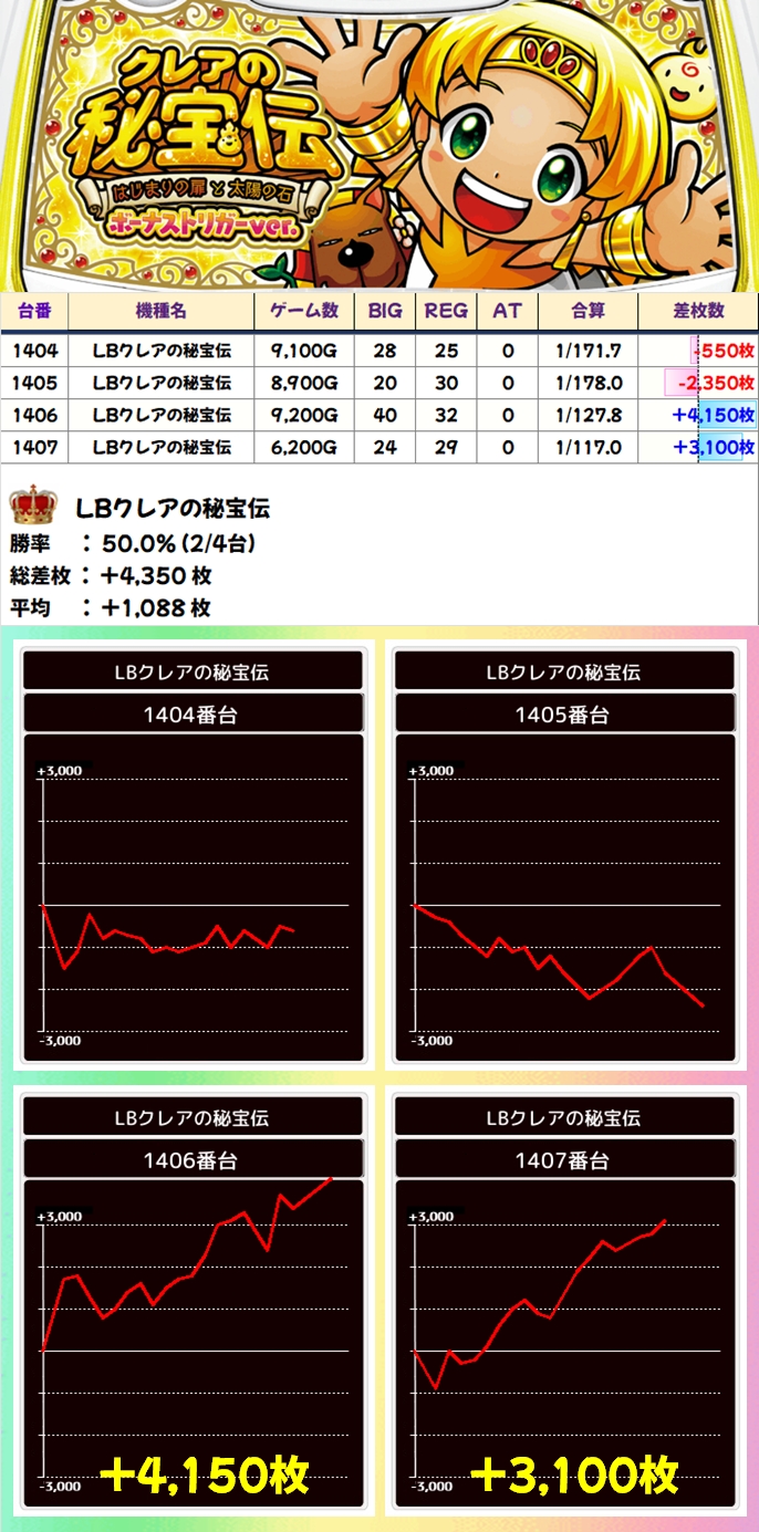 【全台系濃厚】LBクレアの秘宝伝(2/4台+)→平均+1,088枚