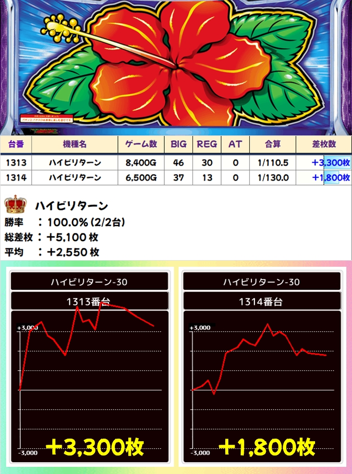 【全台系濃厚】ハイビリターン(2/2台+)→平均+2,550枚