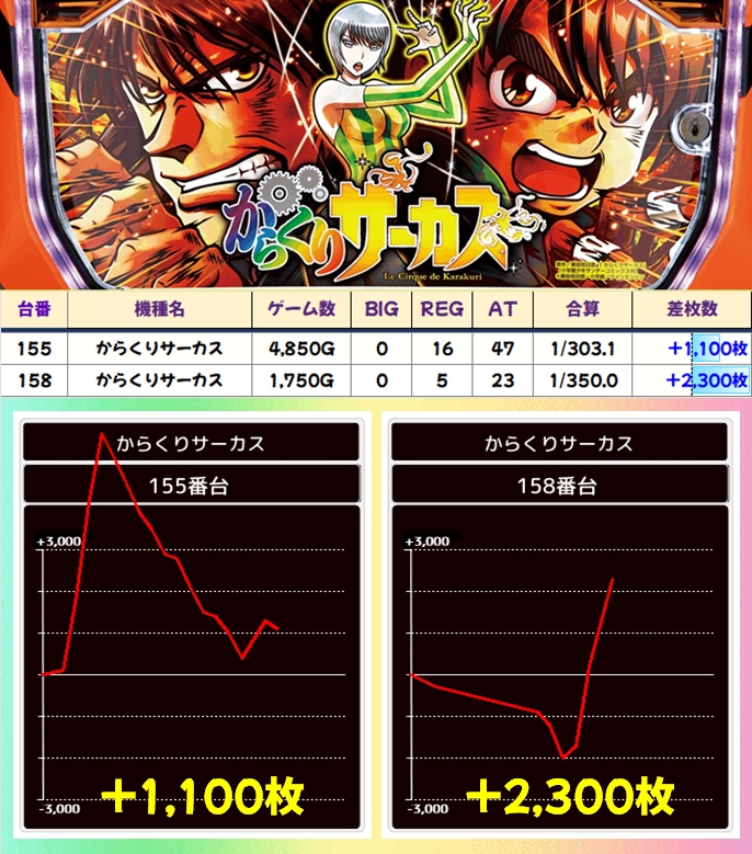 この日はからくりサーカスから優秀台を2台確認。不発に終わった台もあったか!?