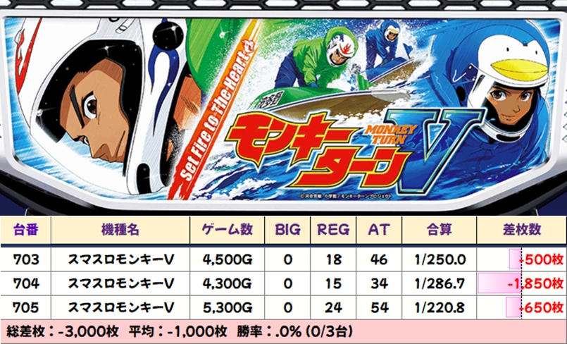 5の日機種のモンキーVはマイナスながらもしっかりと稼働していたので良い要素が確認できた可能性あり。