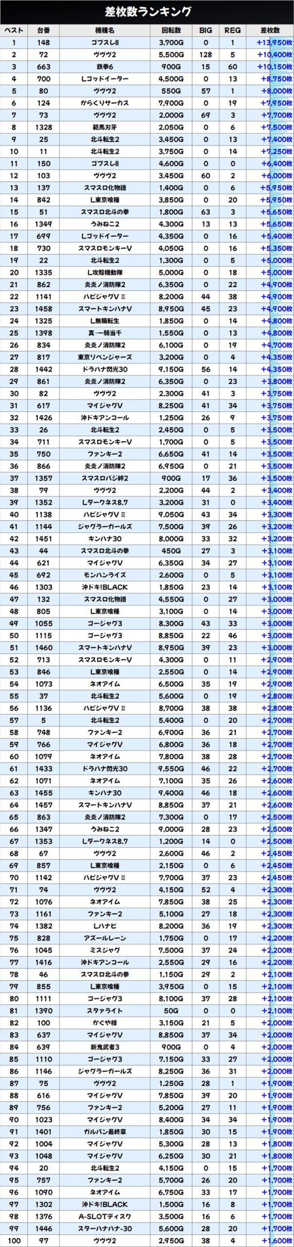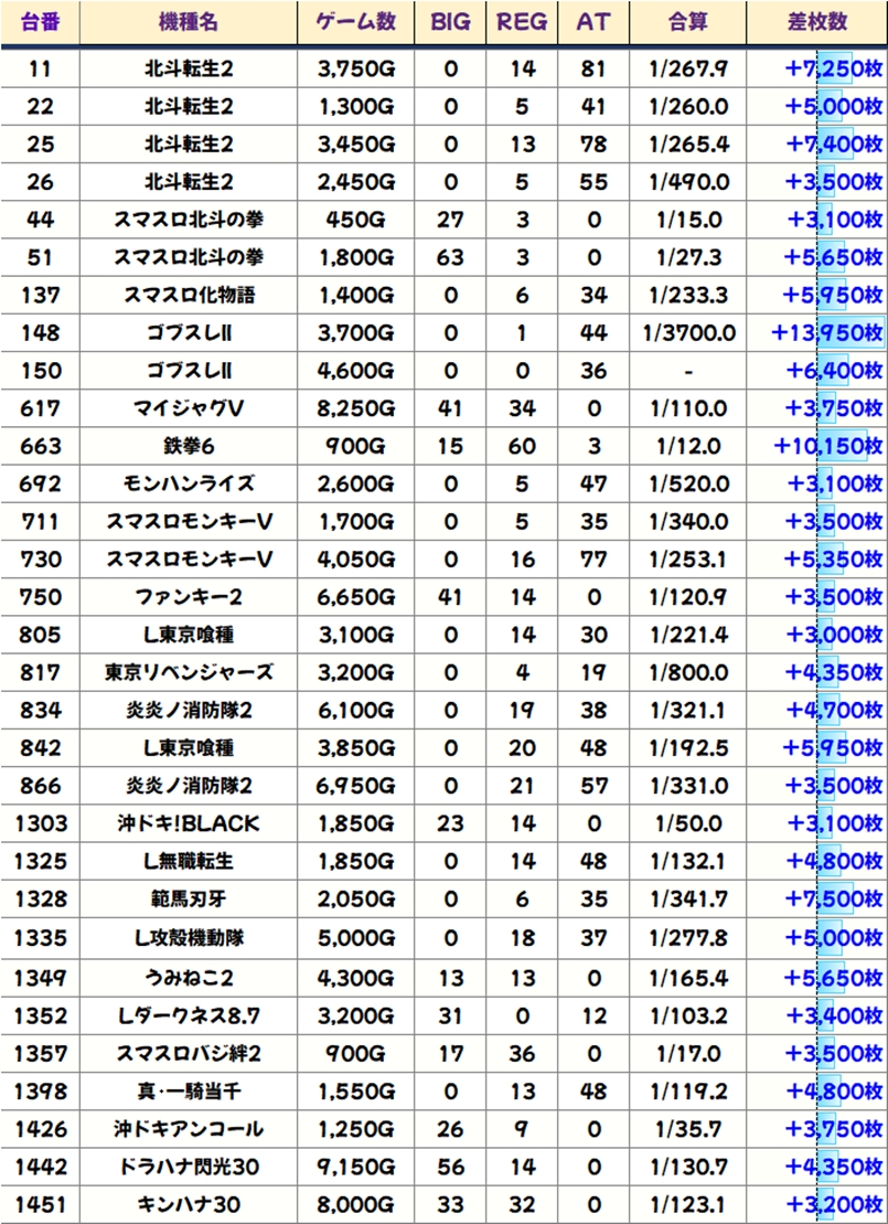 今回も優秀台(+1000枚超)をピックアップしましたので見ていきましょう!