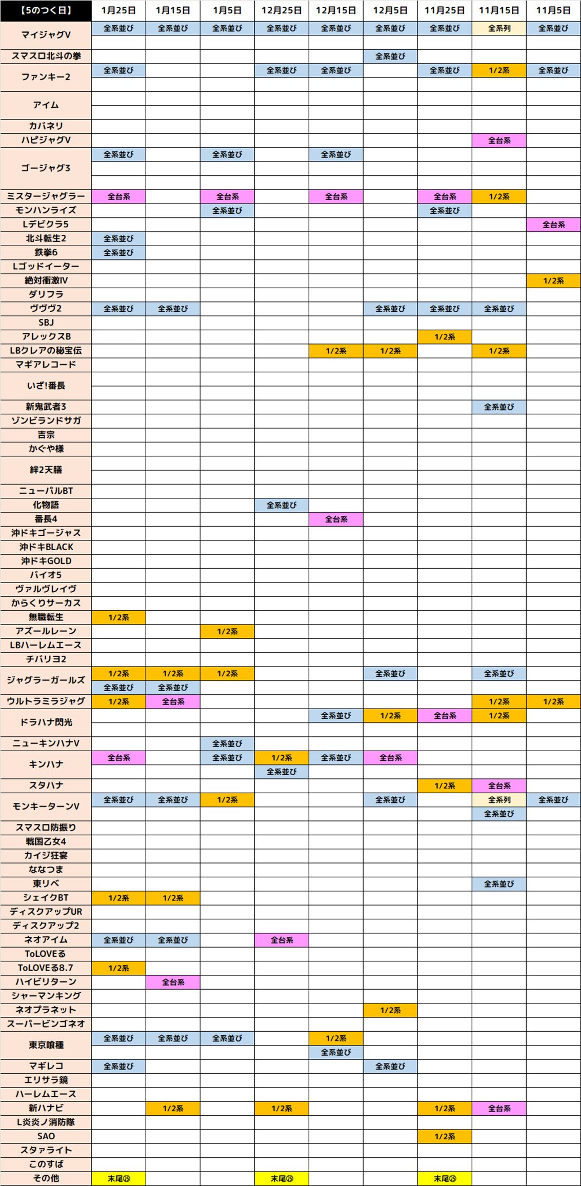 今回は下記の機種に1/2系濃厚の仕掛けがあった模様です。