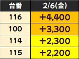 6のつく日の定番仕掛けとなっている末尾⑥番台からは今回もお宝台が続出!