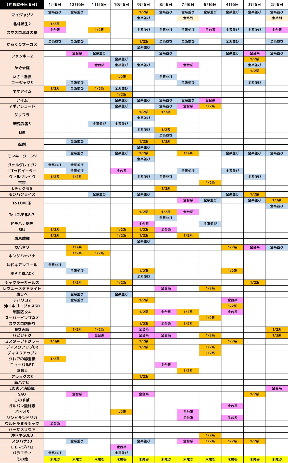 今回は下記の7機種に1/2系濃厚の仕掛けがあった模様!
