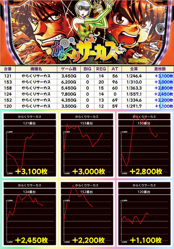 「からくりサーカス」も+2000枚以上が計5台と充実!